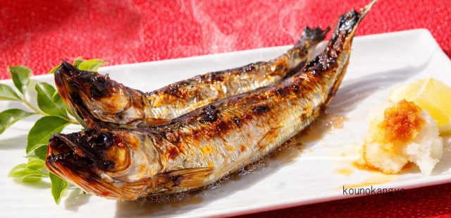 焼きあがった「真いわし丸干し」におろし大根と柑橘類(レモン・カボスなど)を 添えていただきますと消化吸収もよくなりビタミンCを補うことになり、栄養バランス・味ともにさらに良くなります。